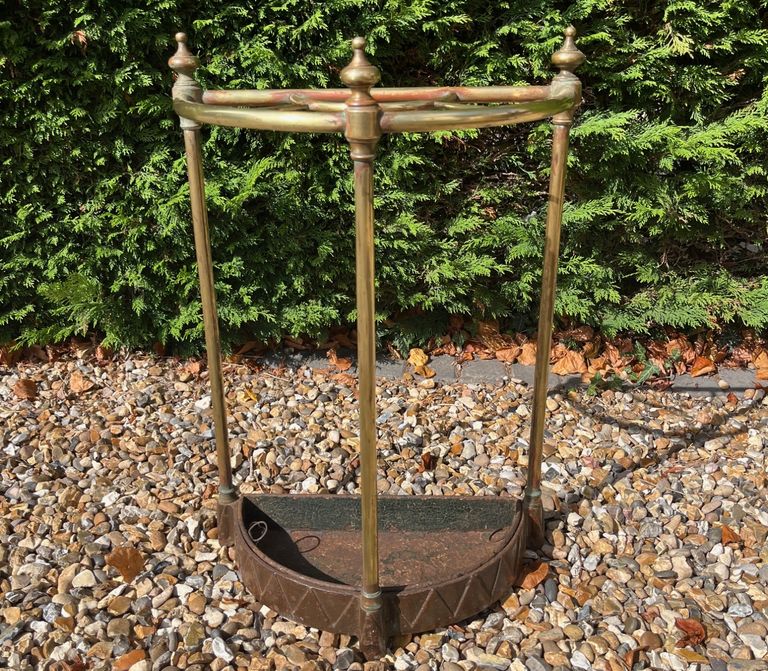 Victorian Brass Umbrella Stand with Original Drip Tray